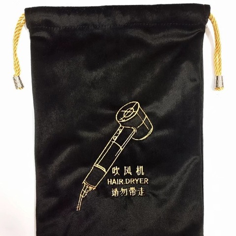 Borse ricamate per asciugacapelli in cotone di colore naturale su misura di colore nero